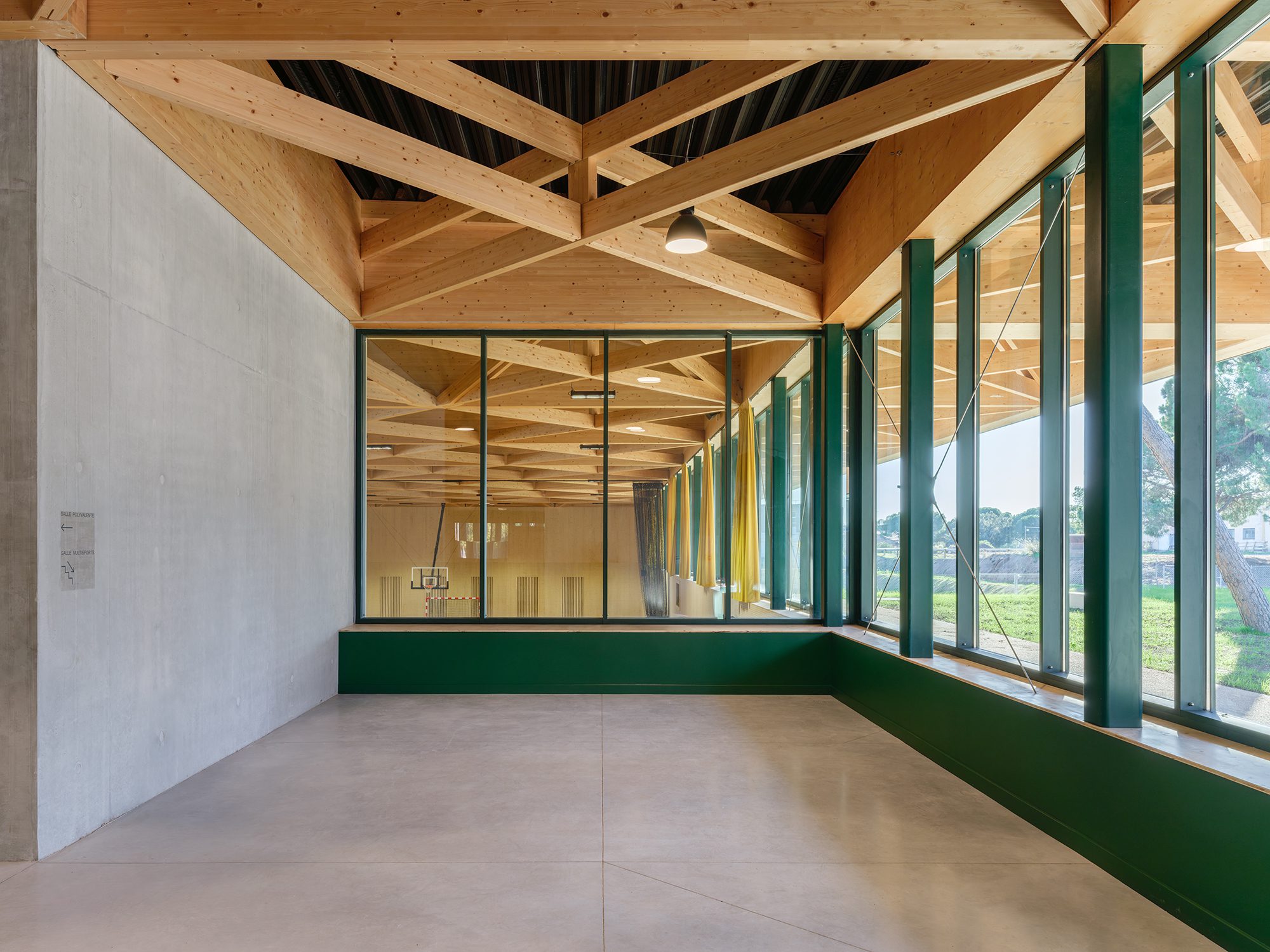 Construction d’un gymnase comprenant une salle omnisports, une salle polyvalente et aménagements paysagers.